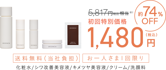 【セット内容】ディセンシア ローション 20mL、ディセンシア リンクルO/L コンセントレート<医薬部外品> 8mL、ディセンシア モイストS/C コンセントレート<医薬部外品> 8mL、ディセンシア クリーム 8g、ディセンシア フォーミング ウォッシュ 2包