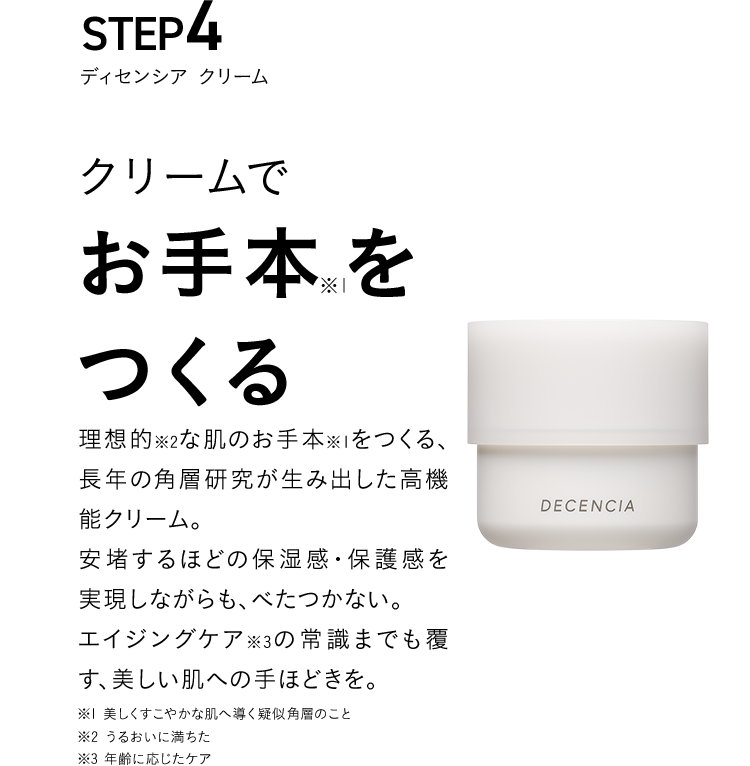 その他の成分:水、濃グリセリン、1,3-プロパンジオール、オレイン酸ポリグリセリル、トリオクタン酸グリセリル、シュガースクワラン、ジグリセリン、ペンチレングリコール、ステアリン酸PEG、硬化油、セラミド2、クチナシエキス、ノバラエキス、シャクヤクエキス、ゼニアオイエキス、アルテアエキス、ローズマリーエキス、イソステアリン酸グリセリル-2、水添大豆リン脂質、ジラウロイルグルタミン酸リシンナトリウム液、フィトステロール、BG、エチルヘキサン酸セチル、グリセリンエチルヘキシルエーテル、カルボキシビニルポリマー、キサンタンガム、ベヘニルアルコール、水酸化K、ビタミンE、セタノール、フェノキシエタノール - ディセンシア クリーム